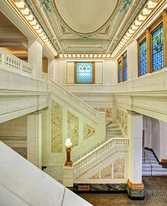 From the moment you enter our restful property, ideally located near the Inner Harbor, the carefully preserved, soaring marble staircases, crystal chandeliers, and Tiffany stained glass windows are early indications that you've arrived somewhere special. History is alive and well within welcoming our walls, but there’s no need to tiptoe around like you're in a museum. Cut loose. Kick back. Get swept up in our playfulness. Revel in the comfort of a colorful living room lobby and rich, warm guest rooms that tempt you to linger longer than you intended. Soak up the spirit at our evening wine hour, where you enjoy pours and bubbly conversation with employees and fellow travelers. And, finally, slip into a local's shoes with the guidance of our knowledgeable employees, always happy to send you out into our friendly city to find the hidden gems that give Baltimore its contagious charm.